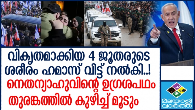 ഗാസയില് വീണ്ടും യുദ്ധത്തിലേക്ക് നീങ്ങാതിരിക്കാന് ഹമാസിന്റെ മുന്കരുതല്..നാല് ബന്ദികളുടെ മൃതദേഹങ്ങള് കൂടി ഇസ്രായേലിന് വിട്ടുനില്കി ഹമാസ്..ഫലസ്തീനി തടവുകാരെ ഇസ്രായേലും ഹമാസിന് കൈമാറി..