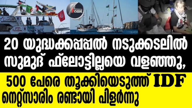 ഗാസയിലേക്ക് സഹായവുമായി എത്തിയ കപ്പലുകള് ഇസ്രായേല് നാവികസേന തടഞ്ഞു... 20 ഇസ്രായേലി നാവിക കപ്പലുകൾ ബോട്ടുകളെ വളഞ്ഞ് എഞ്ചിനുകൾ ഓഫ് ചെയ്യാൻ ഉത്തരവിട്ടു...സുമുദ് ഫ്ലോട്ടില്ലയിൽ ചാടിയിറങ്ങി..