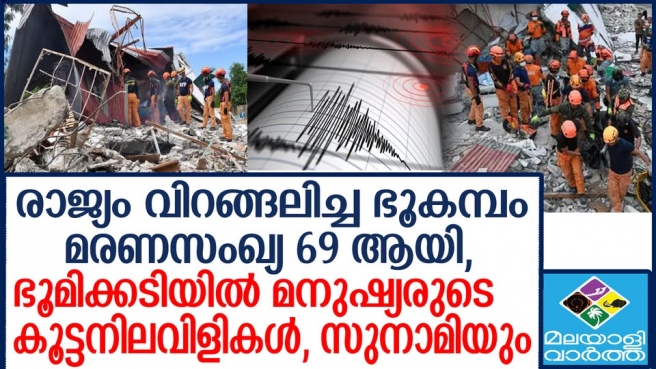 ഭൂകമ്പത്തിൽ മരിച്ചവരുടെ എണ്ണം 69 ആയി.. നൂറുകണക്കിന് ആളുകൾ കുടുങ്ങി...അതിജീവിച്ചവരെ കണ്ടെത്താൻ വീടുതോറും തിരച്ചിൽ നടത്താൻ സ്നിഫർ നായ്ക്കളുടെ പിന്തുണയോടെ സൈനികരും പോലീസും സിവിലിയൻ വളണ്ടിയർമാരും രംഗത്തുണ്ട്...