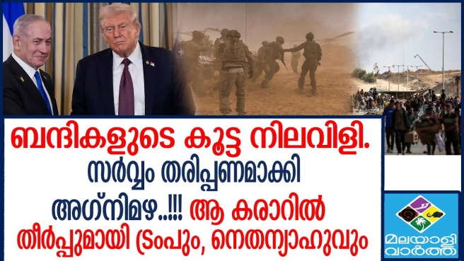 21-ാം നൂറ്റാണ്ടിലെ ഏറ്റവും രക്തപങ്കിലമായ യുദ്ധങ്ങളിലൊന്നാണ് ഗാസയിലെ ഇസ്രയേൽ–ഹമാസ് സംഘർഷം. അനവധി ജീവൻ നഷ്ടപ്പെട്ടതും, വീടുകൾ നിലംപൊത്തിയതും, ഭൂമി രക്തത്തിൽ ചാലിച്ച രണ്ടുവർഷങ്ങൾക്ക് ശേഷം — ഇന്നിതാ ലോകം മുഴുവൻ കാത്തിരിക്കുന്നത് ഒരു പ്രതീക്ഷയിലേക്കാണ്… സമാധാനത്തിന്റെ ആദ്യപ്രഭാതത്തിലേക്കുള്ള ഒരു കാഴ്ചയായി. പശ്ചിമേഷ്യയുടെ മണ്ണിൽ വീണ്ടും ശാന്തത പുനർസ്ഥാപിക്കുമോ എന്ന ചോദ്യത്തിനിടയിലാണ് ഇപ്പോൾ ലോകത്തിന്റെ മുഴുവൻ കണ്ണുകളും. ഹമാസിനുമേൽ വെടിനിർത്തൽ കരാർ അംഗീകരിക്കാനുള്ള ശക്തമായ അന്തർദേശീയ സമ്മർദം ഉയരുന്നു. അതേസമയം, യുഎസ് മുൻ പ്രസിഡന്റ് ഡൊണാൾഡ് ട്രംപ് മുന്നോട്ടുവെച്ച 20-ഇനങ്ങളുള്ള സമാധാനരേഖയാണ് ഇപ്പോൾ ചർച്ചകളുടെ കേന്ദ്രബിന്ദു — എന്നാൽ ആ നിർദേശങ്ങൾ പൂർണ്ണമായി സ്വീകരിക്കാൻ ഹമാസ് ഇതുവരെ തയാറായിട്ടില്ല.