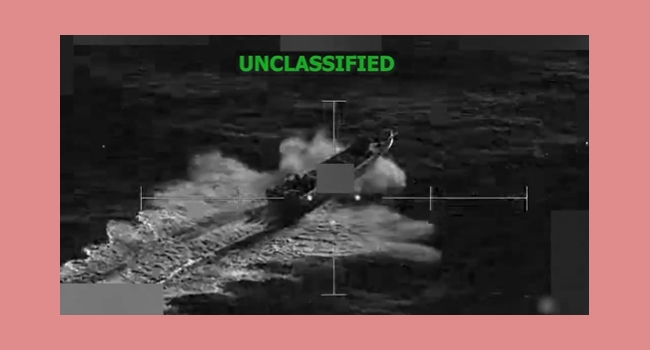 അറിയപ്പെടുന്ന ഒരു കടത്ത് മാർഗത്തിലൂടെയാണ് നാർക്കോ-തീവ്രവാദികൾ കപ്പൽ പ്രവർത്തിപ്പിച്ചതെന്ന് യുഎസ് സതേൺ കമാൻഡ് ഒരു വാർത്താക്കുറിപ്പിലും സോഷ്യൽ മീഡിയയിലും പറഞ്ഞു . ആരോപണങ്ങൾക്ക് പിന്നിലെ തെളിവുകൾ സൈന്യം നൽകിയില്ല, പക്ഷേ സ്ഫോടനം ഉണ്ടാകുന്നതിന് മുമ്പ് ഒരു ബോട്ട് വെള്ളത്തിലൂടെ സഞ്ചരിക്കുന്നതിന്റെ വീഡിയോ പോസ്റ്റ് ചെയ്തു.