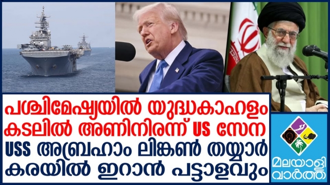 പസിഫിക് സമുദ്രമേഖലയിലുള്ള അമേരിക്കൻ യുദ്ധക്കപ്പലുകൾ പശ്ചിമേഷ്യയിലേക്ക് നീങ്ങിത്തുടങ്ങി. ‘ജൂണിൽ അമേരിക്ക ആക്രമിച്ചപ്പോൾ ഇറാൻ നിയന്ത്രണം പാലിച്ചു. ഇനിയൊരാക്രമണമുണ്ടായാൽ മുഴുവൻ കരുത്തുമെടുത്ത് തിരിച്ചടിക്കാൻ ഞങ്ങളുടെ സൈന്യം മടിക്കില്ല’– ഇറാൻ വിദേശകാര്യ മന്ത്രി അബ്ബാസ് അറഗ്ചി മുന്നറിയിപ്പു നൽകി.സൗത്ത് ചൈന കടലിലായിരുന്ന പോർവിമാന വാഹിനി യുഎസ്എസ് ഏബ്രഹാം ലിങ്കണും അകമ്പടിയായി 3 യുദ്ധക്കപ്പലുകളുമാണു പശ്ചിമേഷ്യയിലേക്കു നീങ്ങുന്നത്. ചൊവ്വാഴ്ച ഇന്ത്യൻ സമുദ്രമേഖലയിൽ പ്രവേശിച്ചെന്നാണു വിവരം.
