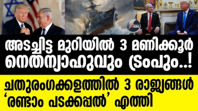മൂന്ന് രാജ്യങ്ങളും നേർക്കുനേർ . ഇസ്രയേൽ പ്രധാനമന്ത്രി ബെഞ്ചമിൻ നെതന്യാഹുവുമായി കൂടിക്കാഴ്ച നടത്തി അമേരിക്കൻ പ്രസിഡന്റ് ഡോണൾഡ് ട്രംപ്. ഗാസയിലെ വെടിനിർത്തൽ, ഇറാൻ ആണവ ചർച്ചകൾ തുടങ്ങിയ വിഷയങ്ങൾ ഇരുവരും ചർച്ച ചെയ്തു. ട്രംപ് രണ്ടാമതും അധികാരമേറ്റെടുത്ത ഇരുവരും തമ്മിൽ നടത്തുന്ന ആറാമത്തെ കൂടിക്കാഴ്ചയാണിത്.മൂന്ന് മണിക്കൂറോളമാണ് ഇരു നേതാക്കളും തമ്മിൽ സംസാരിച്ചത്. ഗാസയിൽ നടപ്പിലാക്കപ്പെട്ട വെടിനിർത്തൽ കരാറിന്റെ ആദ്യഘട്ടം പൂർത്തിയായിരുന്നു.
