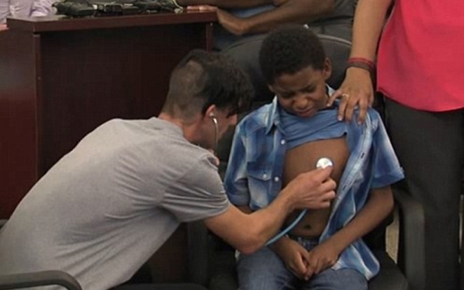ഫ്ളോറിഡ സ്വദേശിയായ ഷാവെന് സിമ്മര്മാനാണ് കാറപടത്തില് മരിച്ച മകളുടെ 'ഹൃദയമിടിപ്പ്' പതിനാലുകാരനായ അല്ജ് ജെഫറീസിന്റെ മാറിടത്തില് നിന്നും സ്തെതസ്കോപ്പ് വഴി കേട്ടത്. മാര്ച്ചിലാണ് ഷാവെന്റെ പതിനാലുകാരിയായ മകള് കാറ്റെലിന് സിമ്മര്മാന് മരിച്ചത്. മദ്യപിച്ചു അശ്രദ്ധമായി വന്ന യുവാവ് ശരീരത്തിലേക്ക് വാഹനം ഇടിച്ചു കയറ്റിയതിനെ തുടര്ന്ന് ആശുപത്രിയില് പ്രവേശിപ്പിച്ചെങ്കിലും കാറ്റലിനു മസ്തിഷ്കമരണം സംഭവിക്കുകയായിരുന്നു. ഇതേ സമയത്ത് ഹൃദയ സംബന്ധമായ അസുഖങ്ങളുമായി അല്ജ് ജെഫറീസിനെ ആശുപത്രിയില് പ്രവേശിപ്പിച്ചു. അസുഖത്തെ തുടര്ന്ന് ഹൃദയമാറ്റം നടത്താനിരുന്ന അല്ജ് ജെഫറീസിനു തന്റെ മകളുടെ ഹൃദയം നല്കാന് ഷാവെന് സിമ്മര്മാന് തീരുമാനിക്കുകയായിരുന്നു.