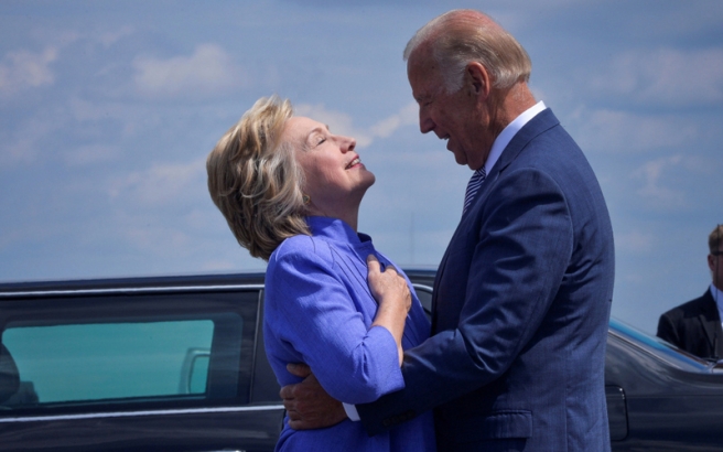 അമേരിക്കന് വൈസ് പ്രസിഡന്റ് ജോ ബൈഡനു കെട്ടിപിടുത്തം' ഒരു ഹോബിയാണ്. ഇക്കഴിഞ്ഞ ദിവസം ബൈഡന്റെ കരവലയത്തില് കുടുങ്ങിയത് അമേരിക്കന് പ്രസിഡന്റ് തിരഞ്ഞെടുപ്പിലെ ഡെമോക്രാറ്റിക് സ്ഥാനാര്ത്ഥി ഹിലാരി ക്ലിന്റനാണ്.