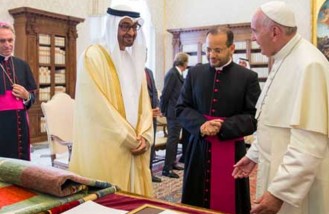 യുഎഇ കിരീടാവകാശിയും രാജകുമാരനുമായ മുഹമ്മദ് ബിന് സയിദ് ഫ്രാന്സിസ് മാര്പ്പാപ്പയുമായി കൂടിക്കാഴ്ച നടത്തി. വത്തിക്കാന് പേപ്പല് ഹെഡ്ക്വാര്ട്ടേഴ്സില്വച്ചായിരുന്നു കൂടിക്കാഴ്ച. ദൈവത്തിന്റെ പേരില് ലോകത്തിന്റെ വിവിധയിടങ്ങളില് നടക്കുന്ന ഭീകരാക്രമണങ്ങളെ തള്ളിപ്പറയാന് മുഹമ്മദ് ബിന് സയിദ് അടക്കമുള്ളവരോട് മാര്പ്പാപ്പ ആഹ്വാനം ചെയ്തിരുന്നു. ഇതിനു തൊട്ടുപിന്നാലെയായിരുന്നു കൂടിക്കാഴ്ച.