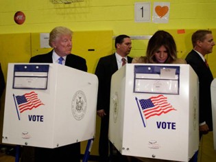 ട്രംപ് കുടുംബത്തോടപ്പം ഈസ്റ്റ് മാന്ഹട്ടണിലെ പോളിങ് സേറ്റഷനിലാണ് വോട്ട് രേഖപ്പെടുത്താന് എത്തിയത്. ഭാര്യ മെലാനിയ വോട്ട് ചെയ്യുന്ന സമയത്ത് ട്രംപ് ഒളിഞ്ഞ് നോക്കുകയായിരുന്നു.