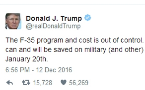 ട്രംപിന്റെ ഒരു ട്വീറ്റ്; ലോക്ഹീഡ് മാര്ട്ടിന് നഷ്ടമായത് 23,646 കോടി രൂപ