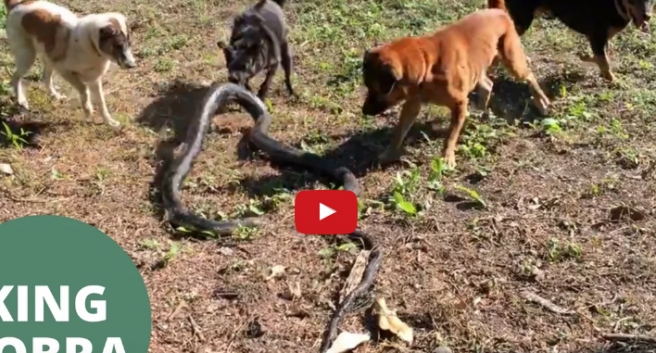 രാജവെമ്പാലയും നായ്ക്കളും തമ്മിലുള്ള പോരാട്ടത്തിന്റെ ഞെട്ടിക്കുന്ന ദൃശ്യങ്ങള്(വീഡിയോ)