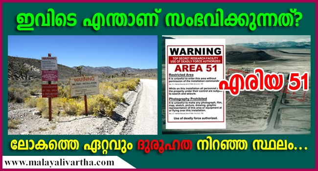 ലോകത്തിലെ ഏറ്റവും നിഗൂഢമായ പ്രദേശം ഏതാണ്. ഈ ചോദ്യത്തിന് വര്ഷങ്ങളായി സൈബര് ലോകത്ത് മുഴങ്ങുന്ന ഉത്തരം എരിയ 51 എന്നാണ്. അമേരിക്കയിലെ നെവാദയിലാണ് ഈ പ്രദേശം. ഹെക്ടറുകളോളം മരുഭൂമിപോലെ കിടക്കുന്ന ഈ പ്രദേശത്ത് എന്താണ് നടക്കുന്നത് എന്ന് ആര്ക്കും അറിയില്ല.