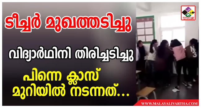 ഇതിനിടെയാണ് ചൈനയിലെ ഒരു ക്ലാസ് മുറിയില് നിന്നുള്ള വീഡിയോ ഇന്റര്നെറ്റില് വൈറലായിരിക്കുന്നത്. ക്ലാസ് മുറിയില് അധ്യാപികയും വിദ്യാര്ഥിനിയും തമ്മിലുള്ള വാക് പോരാണ് തുടക്കം. തര്ക്കത്തിനൊടുവില് അധ്യാപിക വിദ്യാര്ഥിനിയുടെ മുഖത്തടിക്കുന്നു. വിദ്യാര്ഥിനി അടി ചോദിച്ചുവാങ്ങുന്നത് വീഡിയോയില് വ്യക്തമാണ്. എന്തായാലും അടി കിട്ടിയതോടെ വിദ്യാര്ഥിനിയും അധ്യാപികക്ക് ഒന്നു തിരിച്ചുകൊടുത്തു. ഇതോടെ ക്ലാസ് മുറി യുദ്ധക്കളമായി. ഈ വീഡിയോ സോഷ്യല്മീഡിയയില് പറക്കുകയാണ്.