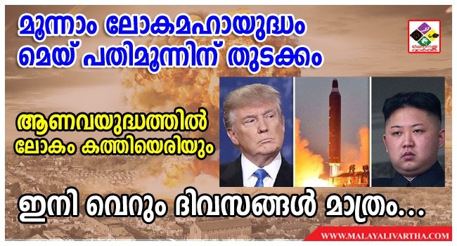 ദൈവത്തിന്റെ സന്ദേശവാഹകനെന്ന് സ്വയം വിശേഷിപ്പിക്കുന്ന ഹൊറാസിയോ വിജേഗാസ് എന്ന പ്രവാചകനാണ് മൂന്നാം ലോകമഹായുദ്ധം നടക്കാന് ഇനി വെറും വിരലിലെണ്ണാവുന്ന ദിവസങ്ങള് മാത്രമേ ഉള്ളൂയെന്ന് പ്രവചിച്ചിരിക്കുന്നത്. ഡെയ്ലി സ്റ്റാറിന് നല്കിയ അഭിമുഖത്തിലാണ് ലോകത്തെ മുള്മുനയില് നിര്ത്തുന്ന ഈ പ്രവചനം. ഉത്തരകൊറിയയും അമേരിക്കയും തമ്മില് മൂന്പെങ്ങുമില്ലാത്ത വിധം ശത്രുതയിലേക്ക് നീങ്ങുന്ന നാളുകളാണ് കടന്നുപോകുന്നത്. ഇരുരാജ്യങ്ങളും ഒരു മൂന്നാംലോകമഹായുദ്ധം തുടങ്ങാന് പോകുന്നതിന്റെ പ്രതീതിയാണ് ഉണ്ടാക്കിയിരിക്കുന്നത്. തുടര്ച്ചയായി ആണവപരീക്ഷണങ്ങള് നടത്തുന്ന ഉത്തരകൊറിയയുടെ നിലപാട് ഒരു യുദ്ധത്തിലേക്ക് ട്രംപ് ഭരണകൂടത്തെ പ്രകോപിപ്പിക്കുമെന്ന് ലോകം ഭയക്കുന്നു. അതിനിടെ മൂന്നാം ലോക മഹായുദ്ധം അടുത്ത മാസം നടക്കുമെന്ന പ്രവചനവും വന്നിരിക്കുന്നു.