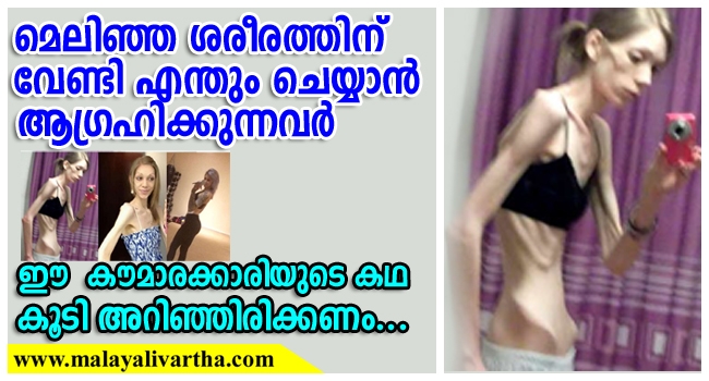 വെറും 25 കിലോ ഭാരമുള്ള ഒരു കൗമാരക്കാരിയുടെ രൂപത്തെക്കുറിച്ച് നിങ്ങള്ക്കു ചിന്തിക്കാമോ? കഴിക്കാന് ഭക്ഷണമില്ലാഞ്ഞിട്ടല്ല ഈറ്റിങ് ഡിസോര്ഡര് ആണ് ശരീരത്തില് നിന്നും എല്ലുകള് എണ്ണിയെടുക്കാവുന്ന വിധം ഇവളെ ഒരു പട്ടിണിക്കോലമാക്കിയത്. മെലിഞ്ഞ ശരീര പ്രകൃതിയായിരുന്നു ഹാംപ്ഷെയറിലെ നിക്കോള എന്ന കൗമാരക്കാരിക്ക്. വീണ്ടും മെലിയണം സുന്ദരിയാവണം എന്ന ചിന്ത കടുത്തു വന്നപ്പോള് കഴിക്കുന്ന ഭക്ഷണത്തിന്റെ അളവു അവള് നന്നേകുറച്ചു. കൂടാതെ അതികഠിനമായ വ്യായാമ മുറകളും പിന്തുടര്ന്നു. കുറഞ്ഞ അളവിലുള്ള ഭക്ഷണവും അിത വ്യായാമവും മൂലം അവള് വീണ്ടും മെലിഞ്ഞു.