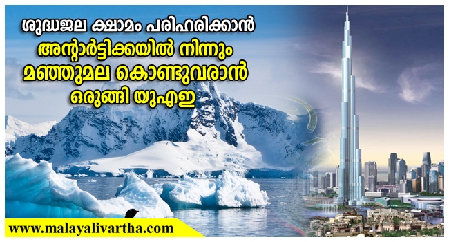 ഗള്ഫ് മേഖലയിലെ കുടിവെള്ള പ്രശ്നത്തിന് പരിഹാരം കണ്ടെത്താനായി സാഹസിക നീക്കത്തിന് ഒരുങ്ങുകയാണ് യുഎഇ. അന്റാര്ട്ടിക്കയിലെ മഞ്ഞുമലകള് വലിച്ചുകൊണ്ടു വരാനാണ് ഉദ്ദേശിക്കുന്നത്. ഈ നീക്കത്തെ ലോകം ആശ്ചര്യത്തോടെ ആണ് കാണുന്നത് പല സാഹസികതകള് പലതും കാണിച്ചു ലോകത്തെ ആശ്ചര്യപ്പെടുത്തുന്ന യുഎഇ യുടെ പുതിയ നീക്കം വളരെ ഗൗരവമേറിയതാണ്. മസ്ദര് സിറ്റി കേന്ദ്രമായ യുഎഇയിലെ സ്വകാര്യ കമ്പനിയായ നാഷണല് അഡൈ്വസര് ബ്യൂറോ ആണ് ഈ ഉദ്യമത്തിന് തുടക്കമിടുന്നത്. രാജ്യത്ത് രൂക്ഷമായ കുടിവെള്ള പ്രശ്നത്തിന് ഒരു പരിഹാരം എന്ന നിലയ്ക്കാണ് ഈ പദ്ധതി.