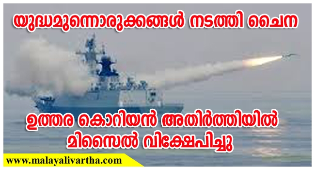 ഉത്തര കൊറിയയുടെ അതിര്ത്തിയില് ചൈന അത്യാധുനിക മിസൈല് വിക്ഷേപിച്ചതായി വാര്ത്തകള്. പീപ്പിള് ലിബറേഷന് ആര്മിയാണ് മിസൈല് പരീക്ഷണം നടത്തിയത്. ഇത് സംബന്ധിച്ച ഔദ്യോഗിക സ്ഥിരീകരണം ചൈനീസ് സര്ക്കാരും നടത്തിയിട്ടുണ്ട്. അമേരിക്ക, ജപ്പാന്, ദക്ഷിണകൊറിയ, ഇന്ത്യ, അമേരിക്ക തുടങ്ങി രാജ്യങ്ങളാണ് ചൈനയുടെ ഇപ്പോഴത്തെ പ്രധാന ശത്രുക്കള്. ഈ രാജ്യങ്ങളുടെ വെല്ലുവിളി നേരിടാന് ലക്ഷ്യമിട്ടുള്ളതാണ് പുതിയ മിസൈലെന്നും സൂചനയുണ്ട്