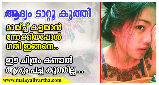 ടാറ്റൂ തരംഗം ലോകത്തെമ്പാടും പരക്കുകയാണ്. സെലിബ്രിറ്റികള് പച്ചകുത്തുന്നതും അത് മായ്ച്ചുകളയുന്നതും കാണുന്നവരാണ് നമ്മള്.ഫാഷന്റെ ഭാഗമായി, ശരീരത്തില് വ്യത്യസ്തമായൊരു ടാറ്റൂ ചെയ്യാന് ആഗ്രഹിക്കാത്ത യുവതി യുവാക്കള് ഇന്ന് വിരളം. എന്നാല്, ടാറ്റൂ കുത്തിയവരില് പകുതി പേര്ക്കും, ഒരു നിശ്ചിതകാലം കഴിയുമ്പോള് ഈ ടാറ്റൂ ഒരു ഭാരമായി തോന്നും. പിന്നെ, ഏതു വിധേനയും അത് ഒഴിവാക്കണം എന്നാകും ചിന്ത. പ്രതിവിധി വിലയേറിയ ലേസര് പ്രയോഗം മാത്രം. ഇത്തരത്തില് ടാറ്റൂ കുത്തി, പിന്നീട് ടാറ്റൂ മായ്ക്കുന്ന ശീലമുള്ളവരെ ഈ തായ് വാന് പെണ്കുട്ടിയുടെ അനുഭവം ഞെട്ടിക്കും.