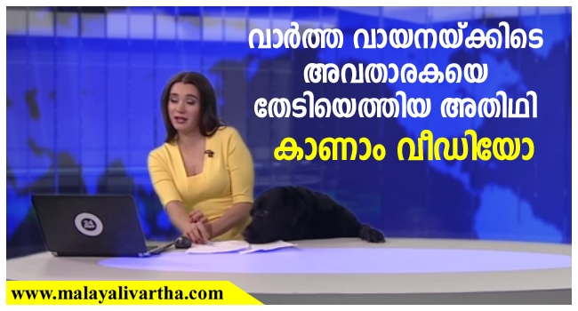 ന്യൂസ് റൂമില് പലവിധത്തിലുള്ള രസകരമായ സംഭവങ്ങളും നടക്കാറുണ്ട്. അത്തരം ഒരു രസകരമായ ദൃശ്യമാണ് റഷ്യയിലെ ഒരു പ്രാദേശിക ചാനലിലെ ന്യൂസ് ലൈവില് കണ്ടത്. വാര്ത്ത വായിക്കുന്നതിനിടയില് ലൈവില് നായ കയറി വരുന്നതും നായയെ അരികിലിരുത്തി മനസ്സാന്നിധ്യം കൈവിടാതെ അവതാരക വാര്ത്ത വായിക്കുന്നതുമാണ് ദൃശ്യത്തില്. യുട്യൂബിലെ നിലവിലെ വീഡിയോ ഇതിനോടകം കണ്ടത് 30 ലക്ഷം ആളുകളാണ്. മോസ്കോയില് നടന്ന ഒരു പ്രധാനപ്പെട്ട സംഭവം അവതാരിക അവതരിപ്പിക്കുകയായിരുന്നു. എന്നാല് അതിനിടയിലാണ് ഇരിക്കുന്ന മേശക്കടിയില് നിന്ന കുര കേട്ടത്. ശബ്ദം കേട്ട് ഞെട്ടലോടെ തിരിഞ്ഞു നോക്കിയ അവതാരക കണ്ടത് കറുത്ത നിറത്തിലുള്ള ലാബ്രഡോര് ഇനത്തില് പെട്ട വളര്ത്തു നായയെയാണ്