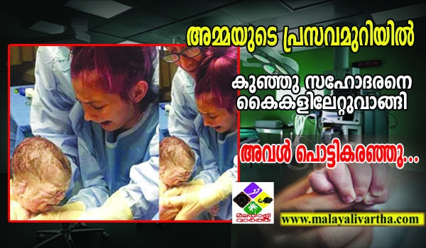 അമ്മയുടെ വയറ്റില് നിന്നു പുറത്തേക്കെത്തുന്ന കുഞ്ഞു സഹോദരനെ കാണാന് അവളും അമ്മയ്ക്കൊപ്പം