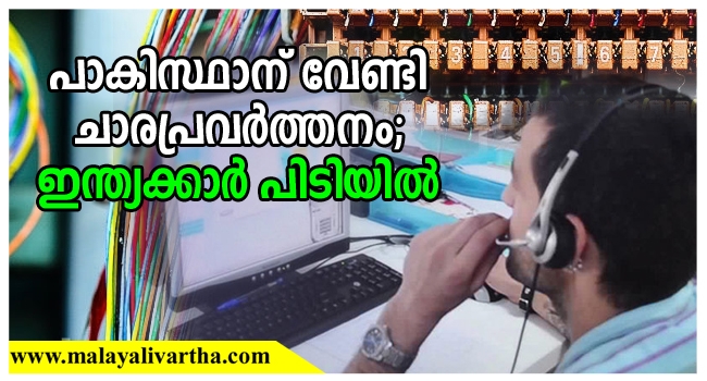 പാക്കിസ്ഥാന് ചാര സംഘടനയായ ഐ എസ് ഐ ക്കായി ഇന്ത്യയിലെ ടെലിഫോണ് എക്സ്ചേഞ്ച് വഴി ചാരപ്രവര്ത്തനം നടത്തിയ ഇന്ത്യന് യുവാക്കള് അറസ്റ്റില് . ഇവരെ ചുറ്റിപ്പറ്റി എക്സ്ചേഞ്ച് റെയ്ഡ് സംഘം അന്വേഷണം നടത്തി വരികയായിരുന്നു .ഇന്ത്യന് സൈന്യത്തെക്കുറിച്ച് പാക് സൈന്യത്തിന് വിവരങ്ങള് ചോര്ത്തി നല്കിയിരുന്നുവെന്നാണ് കണ്ടെത്തല്. മഹാരാഷ്ട്രയിലെ ലാത്തൂരിലാണ് സംഭവം.
