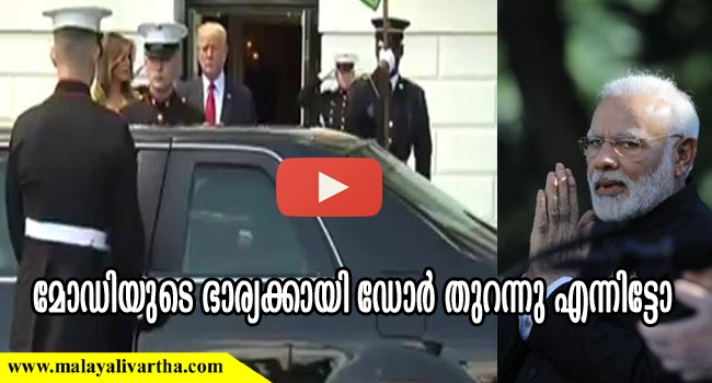 എല്ലാവരെയും പോലല്ല ഇന്ത്യയുടെ പ്രധാനമന്ത്രി അതാണ് മോഡി. പ്രധാനമന്ത്രി നരേന്ദ്രമോദിയുടെ യു.എസ് സന്ദര്ശനത്തിനിടെ 'മോദിയുടെ ഭാര്യയ്ക്കുവേണ്ടി ഡോര് തുറക്കുന്ന' ഗാര്ഡിന്റെ വീഡിയോ സോഷ്യല് മീഡിയകളില് വൈറലാവുന്നു. ട്രംപ് മോദി മീറ്റ് എന്ന ഹാഷ് ടാഗോടു കൂടിയാണ് വീഡിയോ വൈറലാകുന്നത്.