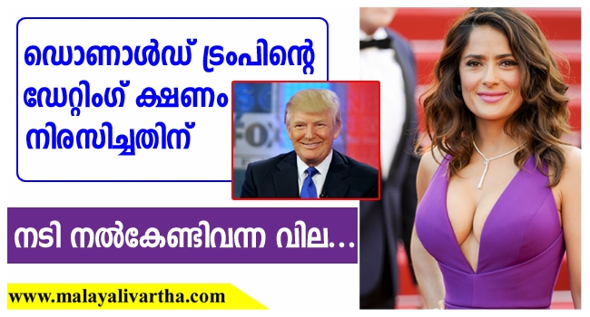 തനിയ്ക്ക് കാമുകനുണ്ടായിരുന്ന നേരത്ത് ഡേറ്റിംഗിന് അമേരിക്കന് പ്രസിഡണ്ട് ഡൊണാള്ഡ് ട്രംപ് ക്ഷണിച്ചെന്നും താന് അത് തള്ളിക്കളഞ്ഞെന്നും അതിന്റെ പേരില് തന്നോട് ട്രംപ് പകരം വീട്ടിയെന്ന് ഹോളിവുഡ് നടി ല്മ ഹെയ്ക്ക്. ഒക്ടോബറില് സ്പാനിഷ് ലാംഗ്വേജ് റേഡിയോ സ്റ്റേഷന് നല്കിയ അഭിമുഖത്തിലാണ് സല്മ ഇക്കാര്യം വെളിപ്പെടുത്തിയത്. താന് ഒരു നടിയായി ശ്രദ്ധിക്കപ്പെടുന്നതിന് മുമ്പായിരുന്നു ട്രംപിന്റെ ഈ ഇടപെടല് എന്നും സല്മ പറഞ്ഞു.