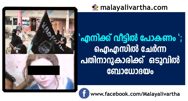 "എനിക്ക് വീട്ടിൽ പോകണം ";ഐഎസിൽ ചേർന്ന പതിനാറുകാരിക്ക് ഒടുവിൽ ബോധോദയം.