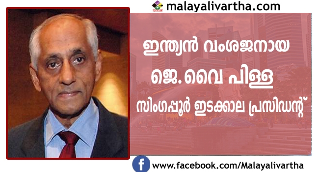സിംഗപ്പൂരിലെ ഇടക്കാല പ്രസിഡന്റായി ഇന്ത്യന് വംശജന് ജെ.വൈ പിള്ളയെ നിയമിച്ചു. മുന് സര്ക്കാര് ഉദ്യോഗസ്ഥനും പ്രസിഡന്റിന്റെ ഉപദേശക സമിതി(സിപിഎ) ചെയര്മാനുമായിരുന്നു പിള്ള. സിംഗപ്പൂർ പ്രസിഡന്റ് വിദേശ സന്ദർശനങ്ങൾക്കായി പോകുമ്പോൾ ആക്ടിംഗ് പ്രസിഡന്റായി പ്രവർത്തിച്ച പരിചയമുണ്ട് പിള്ളയ്ക്ക്