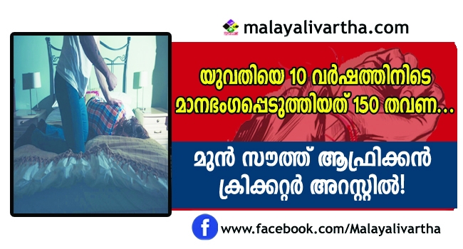 മുന് സൗത്ത് ആഫ്രിക്കന് ഡൊമസ്റ്റിക് ക്രിക്കറ്റര് ഡിയോണ് തല്ജാര്ഡിനെ മാനഭംഗ കേസില് അറസ്റ്റ് ചെയ്തു. യുവതിയെ പത്ത് വര്ഷത്തോളം 150 തവണയോളം ക്രൂരമായി ബലാത്സംഗം ചെയ്തതിനാണ് ഇയാളെ അറസ്റ്റ് ചെയ്ത് 18 വര്ഷത്തെ കഠിനതടവിന് ശിക്ഷിച്ചത്.