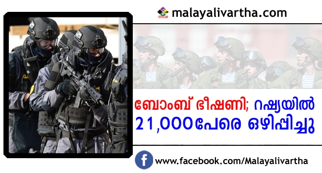 റഷ്യയിൽ ബോംബ് ഭീഷണിയേത്തുടർന്ന് 21,000പേരെ ഒഴിപ്പിച്ചു