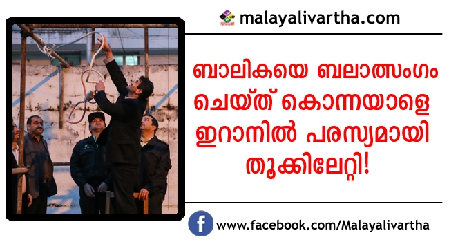 ഏഴ് വയസ്സുകാരിയെ ക്രൂരമായി ബലാത്സംഗം ചെയ്ത് കൊന്നയാളെ ഇറാനില് പരസ്യമായി തൂക്കിലേറ്റി. രാജ്യത്തെ പിടിച്ചുലച്ച ബലാത്സംഗകേസില് കുറ്റക്കാരനെന്നു കണ്ടെത്തിയ ഇസ്മയില് ജാഫര്സദേഹ്നെ ജനമധ്യത്തില് തൂക്കിലേറ്റുന്നതിന്റെ ദൃശ്യം ഇറാന്റെ ഔദ്യോഗിക വെബ്സൈറ്റ് പുറത്തുവിട്ടു.