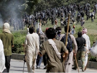 പ്രതിഷേധക്കാരില് ചിലര് സുരക്ഷാവലയവും ബാരിക്കേഡും ഭേദിച്ച് പാര്ലമെന്റ് വളപ്പിലേക്ക് കടക്കാന് ശ്രമിച്ചതിനെത്തുടര്ന്ന് പോലീസ്കണ്ണീര്വാതകവും റബ്ബര് ബുള്ളറ്റും പ്രയോഗിക്കുകയായിരുന്നു. കൊല്ലപ്പെട്ടവരില് ഒരാള് തന്റെ പാര്ട്ടി പ്രവര്ത്തകനാണെന്ന് പാക്കിസ്ഥാന് തെഹരീകെ ഇന്സാഫ് പാര്ട്ടി നേതാവ് ഇമ്രാന് ഖാന് പറഞ്ഞു.