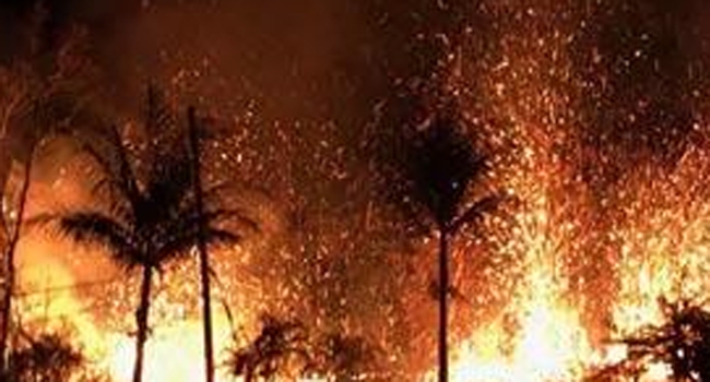 അമേരിക്കയിലെ ഹവായ് ദ്വീപിലെ കിലൗയ അഗ്നിപര്വതം പൊട്ടിത്തെറിച്ചുണ്ടായ ലാവാ പ്രവാഹം തുടരുന്നു
