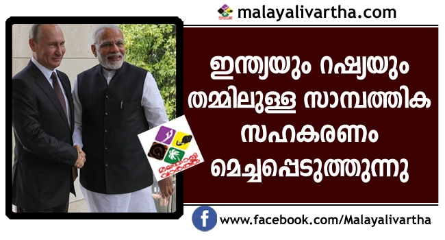 ഇന്ത്യയും റഷ്യയും തമ്മിലുള്ള സാമ്പത്തിക സഹകരണം മെച്ചപ്പെടുത്താൻ തീരുമാനം; പ്രധാനമന്ത്രി നരേന്ദ്ര മോദിയും റഷ്യന് പ്രസിഡന്റ് വ്ളാഡിമിര് പുടിനും തമ്മില് നടത്തിയ അനൗദ്യോഗിക ചര്ച്ചകള്ക്കൊടുവിലാണ് തീരുമാനം