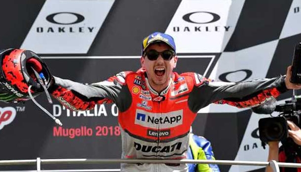 ഇറ്റാലിയന് മോട്ടോ ജിപി സ്പെയിന്റെ ജോര്ജ് ലൊറെന്സോയ്ക്ക്. ഡുക്കാട്ടിയിലേക്ക് മാറിയതിന് ശേഷമുള്ള ആദ്യ വിജയമാണിത്. ഇറ്റലിയുടെ ആന്ദ്രേ ഡോവിസിയോസോ രണ്ടാമതും വാലന്റീനോ റോസി മൂന്നാമതും ഫിനിഷ് ചെയ്തു.