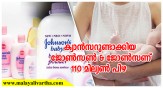ശിശുക്കള്ക്കും അമ്മമാര്ക്കുമുള്ള ആരോഗ്യ പരിചരണ ഉല്പ്പന്നങ്ങള് നിര്മ്മിക്കുന്ന ആഗോള ബ്രാന്ഡ് ജോണ്സണ് ആന്റ് ജോണ്സണ് എതിരെ നിര്ണായക കോടതി വിധി.ജോണ്സണ് ആന്റ് ജോണ്സണ് ഉല്പ്പന്നങ്ങള് അണ്ഡാശയ...