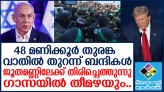 ഹമാസ് ബന്ദികൾ ഉടൻ തിരികെയെത്തുമോ . ഹമാസിനെ നിരായിധീകരിക്കുന്ന കാര്യത്തില് വിട്ടുവീഴ്ച്ചയില്ലെന്നും ബന്ദികള് വീട്ടിലേക്ക് മടങ്ങിയത്തുമെന്നും പ്രഖ്യാപിച്ചു ഇസ്രായേല് പ്രധാനമന്ത്രി ബെഞ്ചമിന് നെതന്യാഹ...