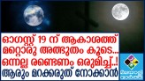 വീണ്ടും വലിയൊരു ആകാശക്കാഴ്ചയ്ക്കു സാക്ഷ്യം വഹിക്കുകയാണ് നാം. ബഹിരാകാശ വാർത്തകൾക്ക് എപ്പോഴും വലിയ പ്രാധാന്യം ലഭിക്കാറുണ്ട്. ഇപ്പോഴിതാ മറ്റൊരു ആകാശ പൂരത്തിന് ഒരുങ്ങുകയാണ് ആകാശം. ഓഗസ്റ്റിലെ 19ന് കാണാവുന്...