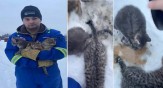 മഞ്ഞില് ഉറഞ്ഞുപോയ വാലുമായി എങ്ങോട്ടും പോകാനാവാതെ കിടന്ന പൂച്ചകുഞ്ഞുങ്ങളെ രക്ഷപ്പെടുത്തിയ വഴിയാത്രക്കാരന് അഭിനന്ദനപ്രവാഹം