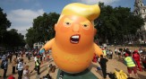 ഓറഞ്ച് നിറത്തിൽ, ഡയപ്പർ കെട്ടി, മൊബൈലും പിടിച്ച് ബേബി ട്രംപ്; പ്രതിഷേധാത്മകമായി സ്ഥാപിച്ച ബലൂൺ നശിപ്പിച്ച നിലയിൽ