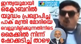 ഇന്ത്യയും പാകിസ്താനും തമ്മില് ഒക്ടോബറിലോ നവംബറിലോ പൂര്ണ യുദ്ധമുണ്ടാവുമെന്ന് പ്രവചിച്ച് പാക് മന്ത്രി.... മോദിയെ വെല്ലുവിളിക്കുന്നതിനിടെ മന്ത്രി ഷോക്കേറ്റ് താഴേക്ക്... കൈ കൊട്ടിച്ചിരിച്ച് സോഷ്യല് മീഡിയ