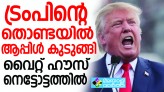 വൈറ്റ് ഹൗസില് നടന്ന ഒരു യോഗത്തിനിടെ ആപ്പിള് സിഇഓ ടിംകുക്കിനെ 'ടിം ആപ്പിള്' എന്ന് ട്രംപ് വിളിച്ചു. അമേരിക്കന് പ്രസിഡന്റ് ഡൊണാള്ഡ് ട്രംപിന് പറ്റിയ ഒരബദ്ധം. ആപ്പിള് സിഇഓ ടിംകുക്കിനെ സംബന്...