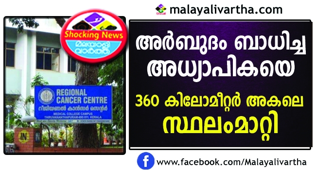 ക്യാന്സര് രോഗിയായ തന്നെ തിരുവനന്തപുരത്ത് നിന്ന് സ്ഥലം മാറ്റരുതെന്ന അധ്യാപികയുടെ പരാതി നിലനില്ക്കെ പട്ടാമ്പി കോളജിലേക്ക് സ്ഥലംമാറ്റി