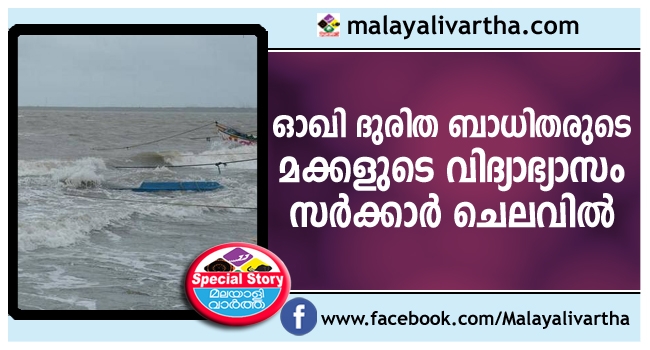 ഓഖി ബാധിതരുടെ മക്കളുടെ വിദ്യഭ്യാസം സംസ്ഥാന സർക്കാർ ഏറ്റെടുത്തു ; വിദ്യാഭ്യാസത്തിനും തൊഴിൽ പരിശീലനത്തിനും ആവശ്യമായ തുക മുഖ്യമന്ത്രിയുടെ ദുരിതാശ്വാസ നിധിയിൽ നിന്നും ജില്ലാ കളക്ടർ മുഖേന നൽകും