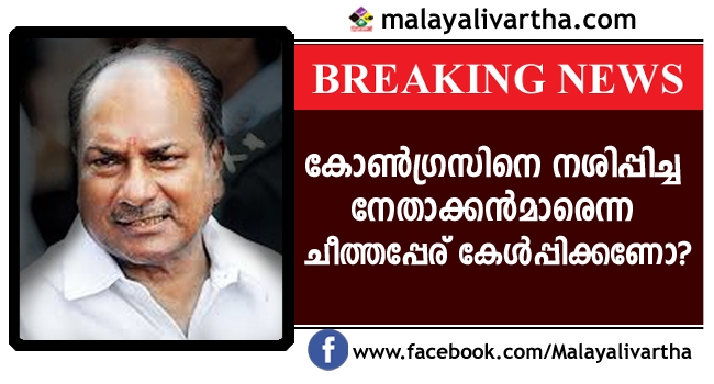 തമ്മിലടിക്കുന്ന യാദവക്കൂട്ടമായി കേരളത്തിലെ കോണ്ഗ്രസ് മാറിയിരിക്കുകയാണ്. കാലഘട്ടത്തിന് അനുസരിച്ച് പാര്ട്ടി ഉയരാനും ക്ഷമിക്കാനും പൊറുക്കാനും വിട്ടുവീഴ്ച ചെയ്യാനും തയ്യാറാകണമെന്നും ആന്റണി ആവശ്യപ്പെട്ടു.1964ല് കെ.എസ്.യു പ്രസിഡന്റ് ആയിരുന്ന കാലത്താണ് കെ.കരുണാകരനെ പരിചയപ്പെടുന്നത്. അന്ന് കെ.എസ്.യു, യൂത്ത് കോണ്ഗ്രസ് നേതാക്കന്മാര്ക്ക് ഇന്ന് കിട്ടുന്നത്രയും അംഗീകാരവും അവസരവും ഇല്ലായിരുന്നു.