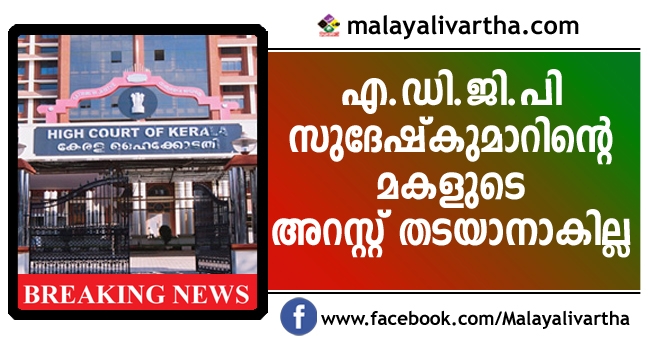 എ.ഡി.ജി.പി സുദേഷ് കുമാറിന്റെ മകളുടെ അറസ്റ്റ് തടയാനാകില്ലെന്ന് ഹൈക്കോടതി, രാജ്യത്തെ മറ്റേത് പൗരനേയും പോലെയാണ് എ.ഡി.ജി.പിയുടെ മകളും അല്ലാതെ മറ്റ് പ്രത്യേകതകളൊന്നുമില്ല