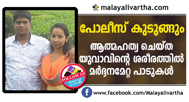 സ്വർണ മോഷണ കേസിൽ പൊലീസ് ചോദ്യം ചെയ്തതിനെത്തുടർന്നു കോട്ടയത്ത് ആത്മഹത്യ ചെയ്ത ദമ്പതികളിൽ യുവാവിന്റെ ശരീരത്തിൽ മർദനമേറ്റതിന്റെ പാടുകൾ