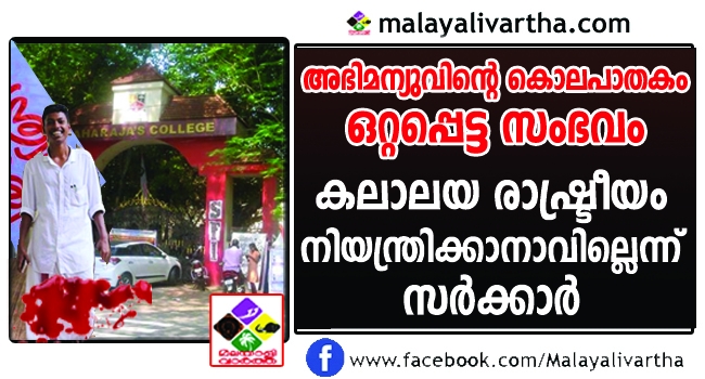 അഭിമന്യുവിന്റെ കൊലപാതകം ഒറ്റപ്പെട്ട സംഭവം ; കേരളത്തില് കലാലയ രാഷ്ട്രീയം നിയന്ത്രിക്കാനാവില്ലെന്ന് സര്ക്കാര് ഹൈകോടതിയില്