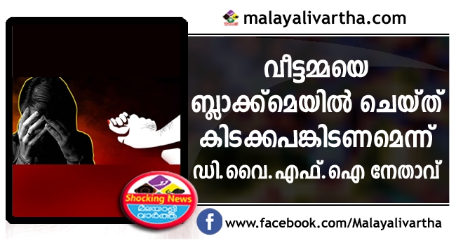 യുവതിയായ വീട്ടമ്മ ദുബായില് പീഡനത്തിനിരയായ സംഭവം പുറത്ത് പറയാതിരിക്കണമെങ്കില് തനിക്കും രണ്ട് സുഹൃത്തുക്കള്ക്കും വഴങ്ങണമെന്ന് ഡി.വൈ.എഫ്.ഐ നേതാവ് ഭീഷണിപ്പെടുത്തുന്നതായി വീട്ടമ്മ