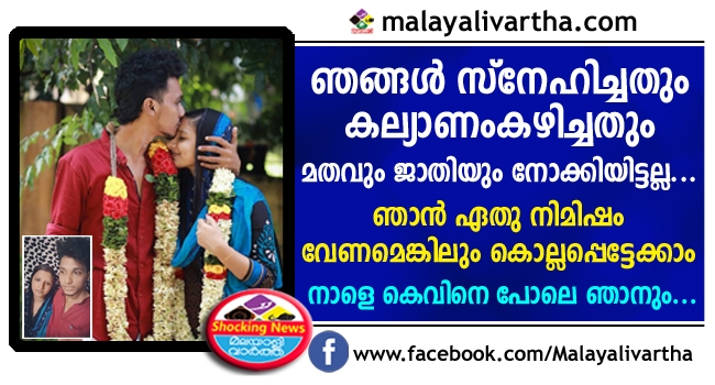 ഞാൻ പ്രേമിച്ചതു ഇവളുടെ മതമോ ജാതിയോ നോക്കി അല്ല അതാണ് ചിലർ എന്നിൽ കാണുന്ന തെറ്റ്. ഞാൻ ഏതു നിമിഷം വേണം എങ്കിലും കൊല്ല പെട്ടെക്കാം. എസ്.ഡി.പി.ഐ യും അവളുടെ വിട്ടുകാരിൽ ചിലരു എന്നെ കൊല്ലാൻ പരക്കം പായുകയാണ്. പ്രേമിച്ച പെണ്ണിനെ കെട്ടി പോയതിനു. നാളെ കെവിനെ പോലെ ഞാനും ഒരു പോസ്റ്റ്റിൽ ഒതുങ്ങും.