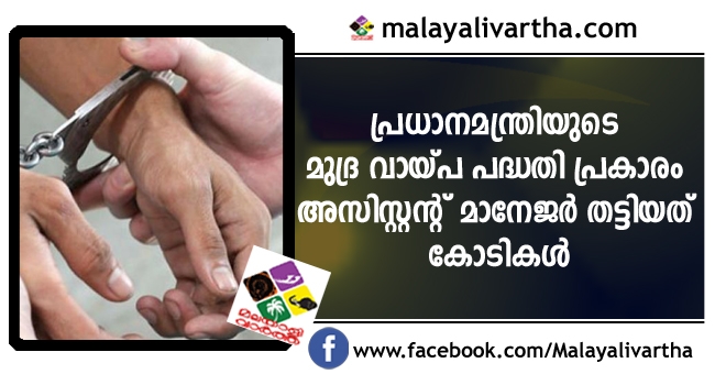 ബന്ധുക്കളുടെയും പരിചയക്കാരുടെയുംപേരില് വ്യാജ അക്കൗണ്ട് തയ്യാറാക്കി, പ്രധാനമന്ത്രിയുടെ മുദ്ര വായ്പ പദ്ധതിപ്രകാരം തട്ടിപ്പ് ; കോട്ടയം കോടിമത ബാങ്ക് ഓഫ് ബറോഡയില് അസിസ്റ്റന്റ് മാനേജര് തട്ടിയത് കോടികള്